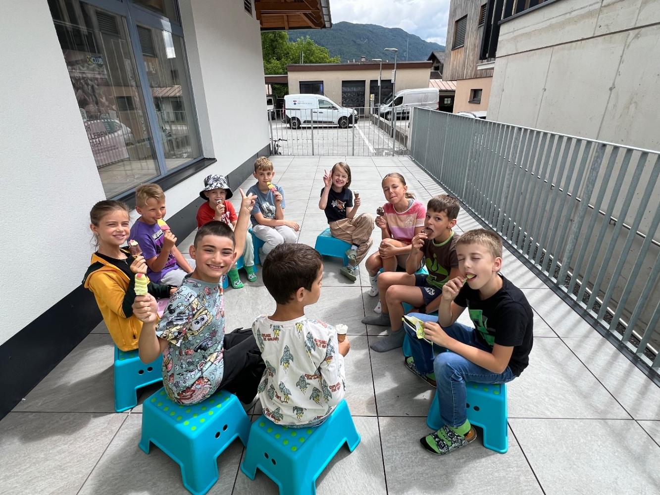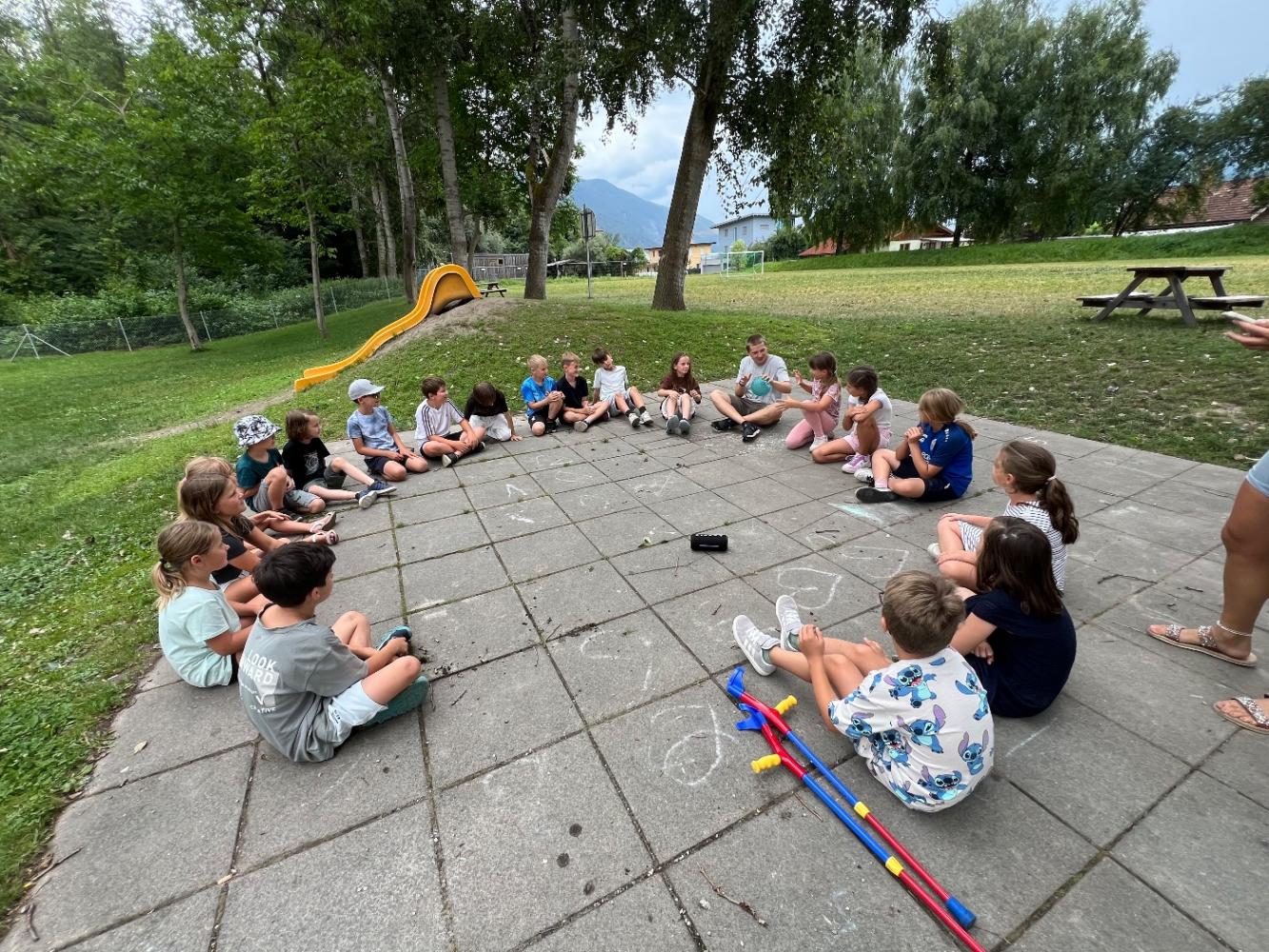 Nun starten wir mit frischer Energie in die Sommerbetreuung und genießen gemeinsam die wohlverdiente Auszeit vom Schulalltag. Gemeinsam erleben wir viele Abenteuer und machen Unternehmungen aller Art. Neben Besuchen auf den umliegenden Spielplätzen, Eis essen, Kuchen backen und dem Spielen mit Wasser, zählen heuer ein Ausflug mit Zugfahrt zum Wasserfall Silz, das Würstel- und Marshmallowgrillen im Wald, ein Theaterworkshop sowie der Besuch bei der Freiwilligen Feuerwehr Oberhofen zu den besonderen Highlights.