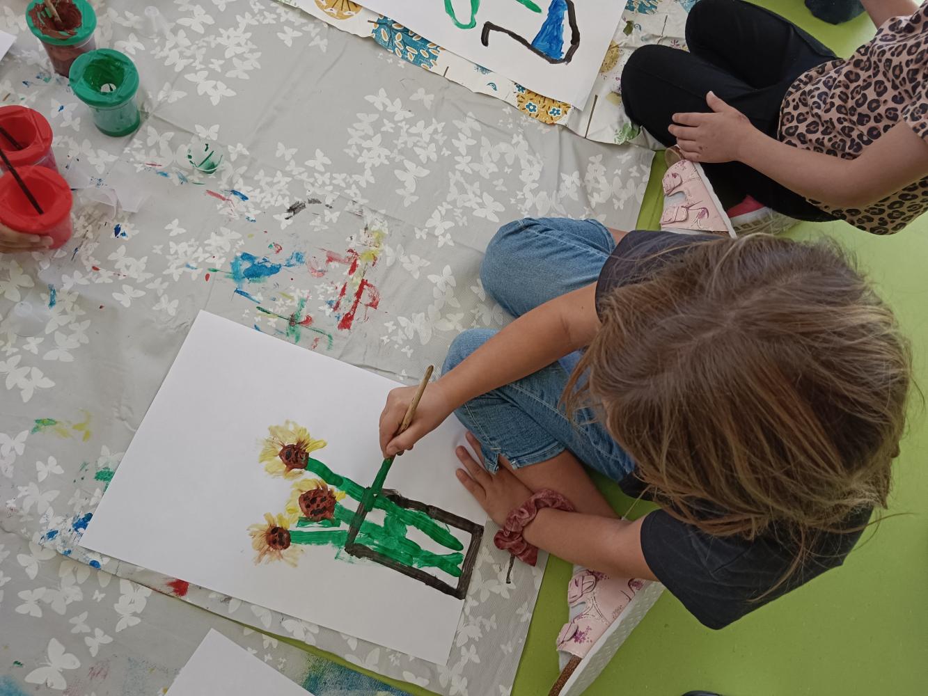 Nach dem Besuch der Vernissage von Hans Gapp sowie einem Herbstspaziergang durch Oberhofen, bei dem wir viele Sonnenblumen entdeckt haben, kam Walter Wolf auf die Idee Sonnenblumenbilder zu malen. Wir haben herausgefunden, dass es einen berühmten Maler in Holland gab, der sehr bekannt durch seine Sonnenblumenbilder und seine spezielle Strich-Maltechnik wurde. Der Künstler Vincent van Gogh beschäftigte uns einige Tage und gemeinsam mit Walter Wolf haben wir vieles über den Maler selbst sowie über sein Heimatland herausgefunden. Unter anderem wissen wir jetzt, dass Holland auch als Niederlande bezeichnet wird und Amsterdam die Hauptstadt dieses europäischen Landes ist. Ebenso haben wir herausgefunden, dass Tulpenfelder, Windmühlen, Holzschuhe und ein großer Käsemarkt sehr typisch für dieses Land sind. Sogar das Zählen von 1-5 auf Holländisch haben wir geübt. Unsere Sonnenblumenbilder können derzeit im Hort-Gang betrachtet werden und wir freuen uns schon auf unser nächstes Reiseziel!