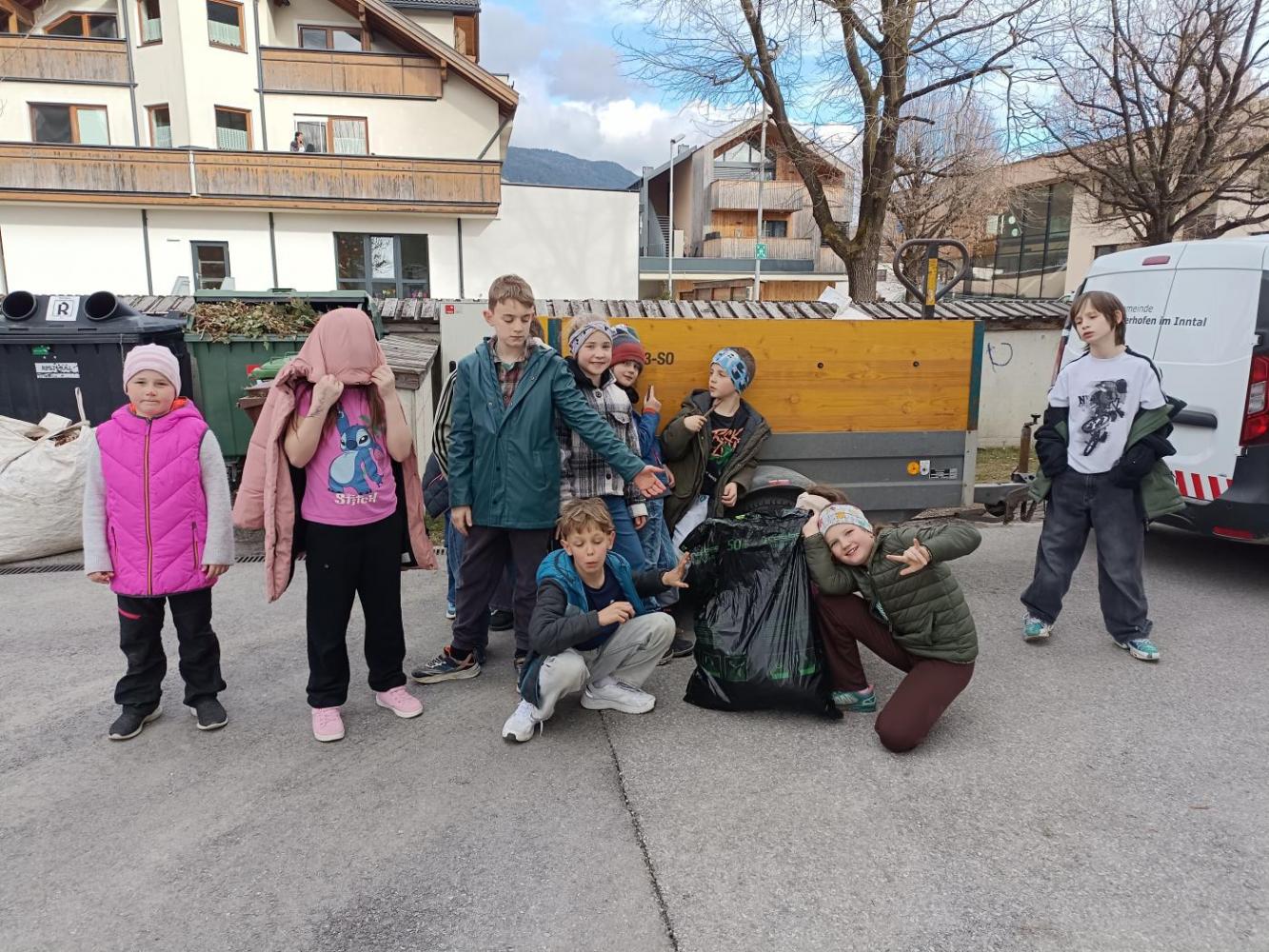 Um die Natur von achtlos weggeworfenem Müll zu befreien und gleichzeitig den Kindern Umweltbewusstsein zu vermitteln war auch der Hort an zwei Tagen mit Handschuhen und Müllsäcken ausgestattet im Dorf unterwegs.